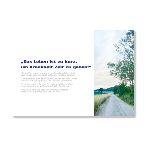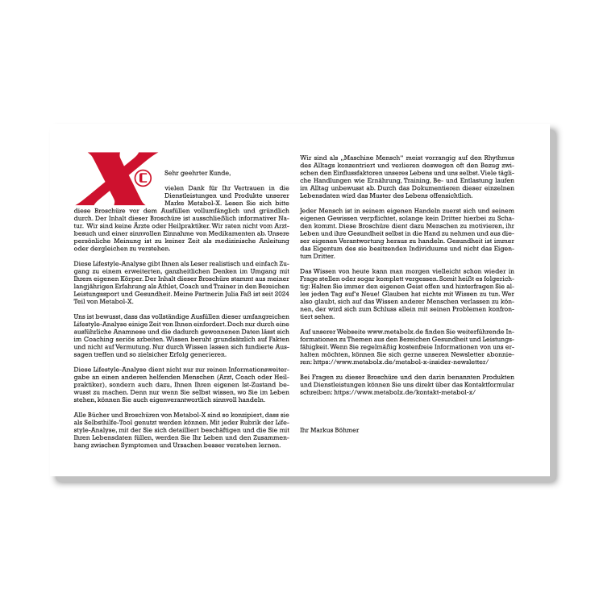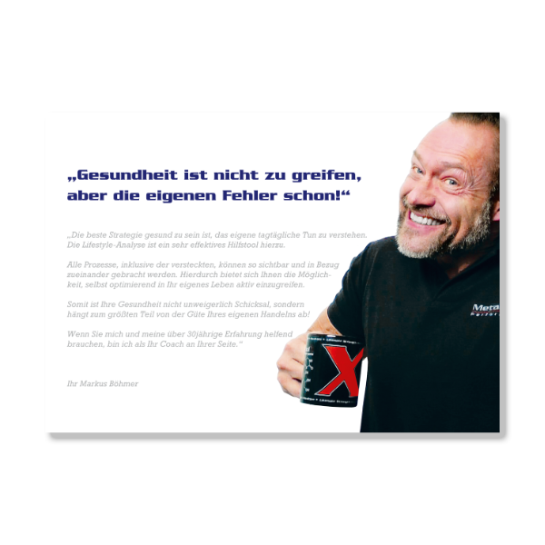 Diese spezielle Analyse-Broschüre ist für die Aufnahme relevanter Lebensdaten extra konzipiert. Im Mittelpunkt steht deshalb das analytische Abfragen und zeitgleich das Dokumentieren dieser Daten. Dies ist ein ganzheitlicher Ansatz, bei dem nicht das Medikament als Heilsbringer propagiert wird. Wie soll denn ein Medikament vom Arzt das eigene falsche Handeln über Jahre hinweg kompensieren?