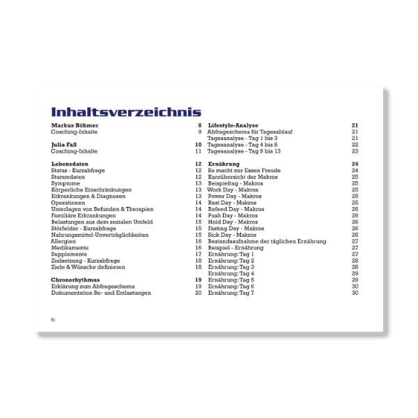 Geradezu die perfekte Hilfe, wenn Menschen den eigenen Lifestyle analysieren möchten. In der Bildergalerie sehen Sie das Inhaltsverzeichnis im Detail. Mit der Broschüre Lifestyle-Analyse arbeiten Sie gezielt, für gute Ergebnisse ist das ein absolutes Muss.